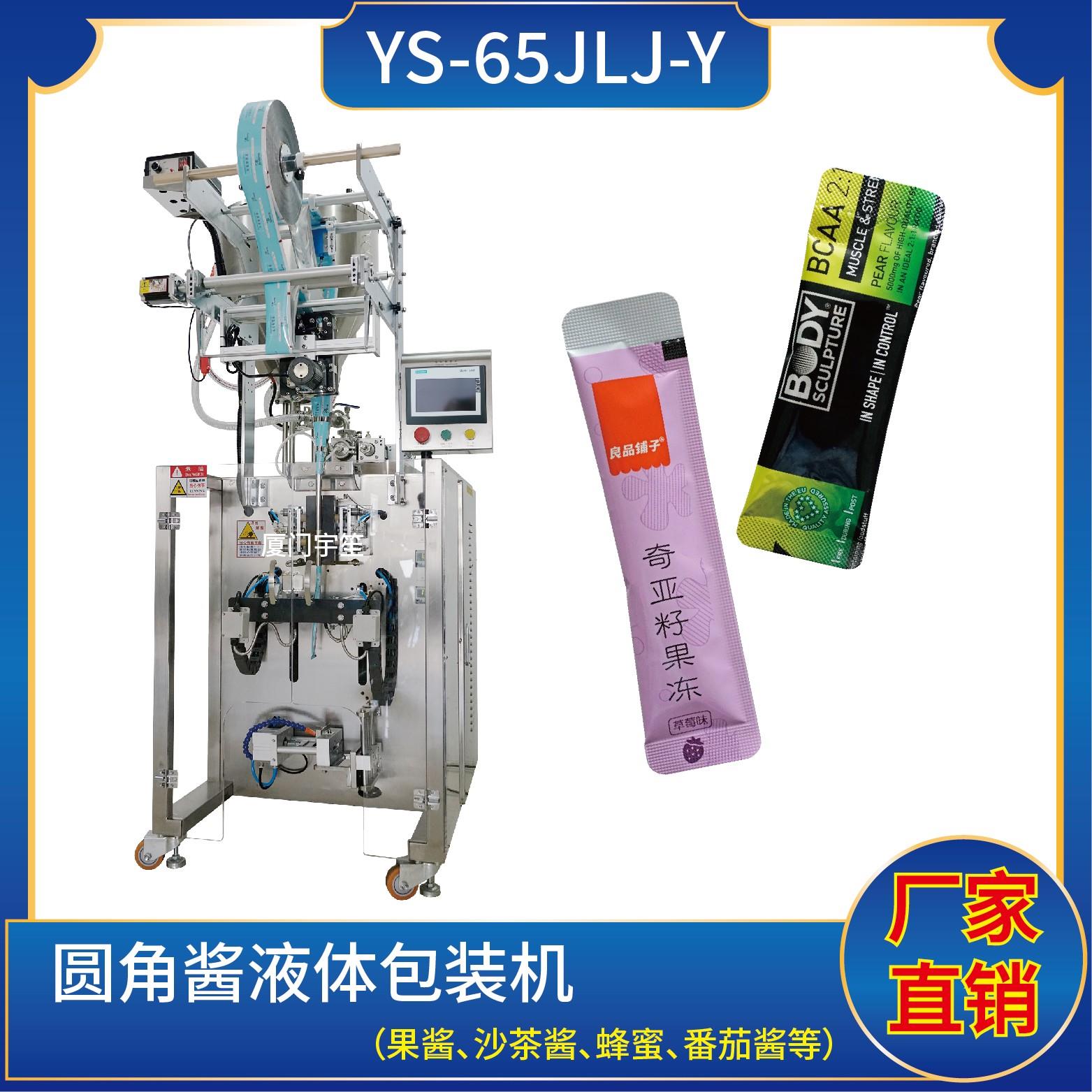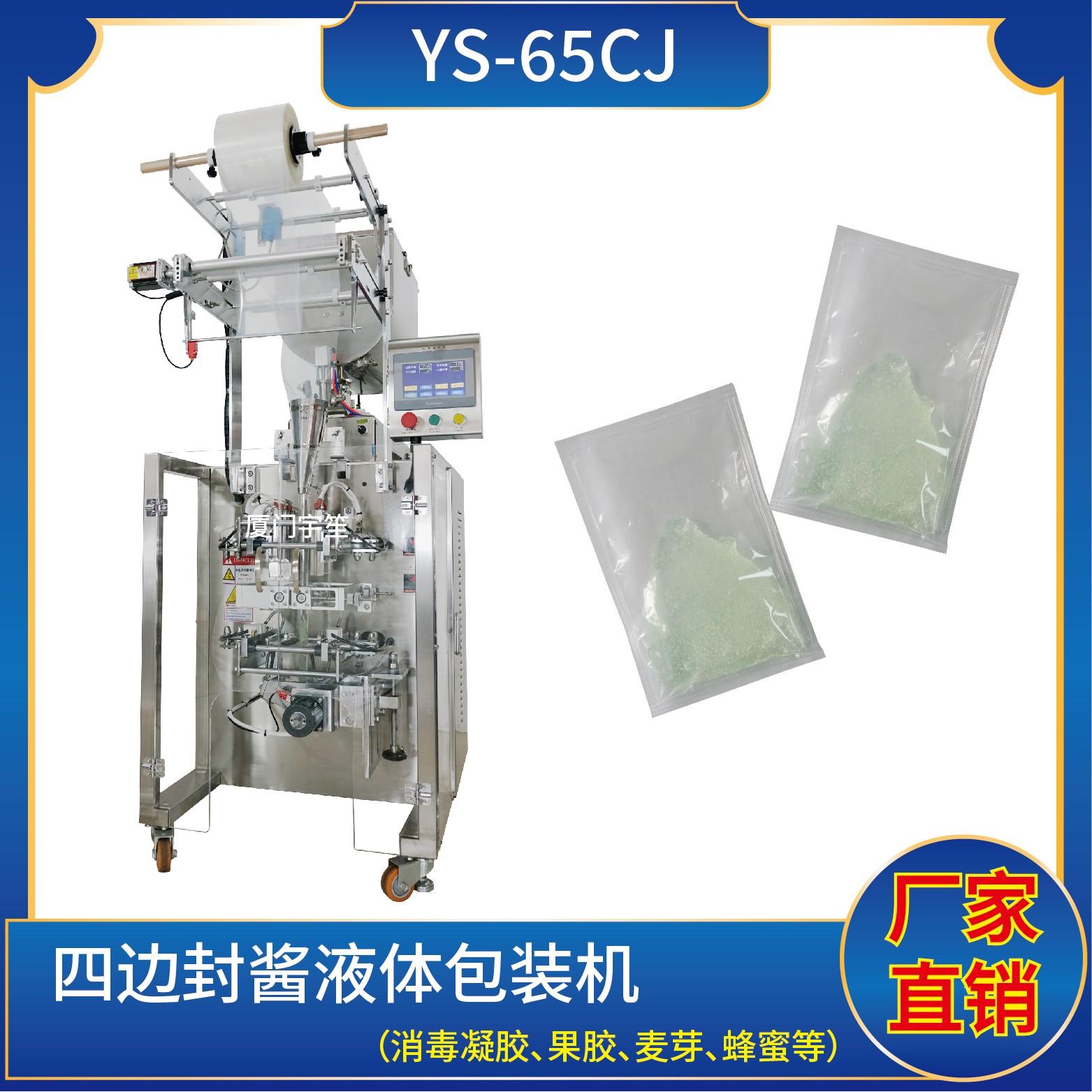 YS-65JL 異型袋醬液體包裝機特 點 1、適用于食品、醫(yī)藥、化工、化妝品行業(yè)中液體、醬料等物品的計量包裝。2、可自動完成制袋、計量、下料、封合、分切、計數(shù)、且可根據(jù)客戶要求配置打印批號等功能。3、觸摸屏操作,PLC 控制,驅(qū)動步進電機控制袋長,性能穩(wěn)定、調(diào)整方便、檢測準確。智能式溫控儀,PID調(diào)節(jié),保證將溫度的…